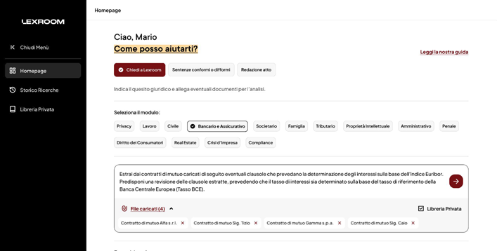 Lexroom.ai è in grado di estrarre clausole, revisionare testi complessi e restituire output chiari in pochi secondi